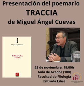 Presentación del poemario Traccia/Traza, de Miguel Ángel Cuevas, Facultad Filología Universidad de Sevilla, 25 de noviembre de 2025, con la profesora Dalila Colucci y la profesora Rocío Rojas-Marcos.