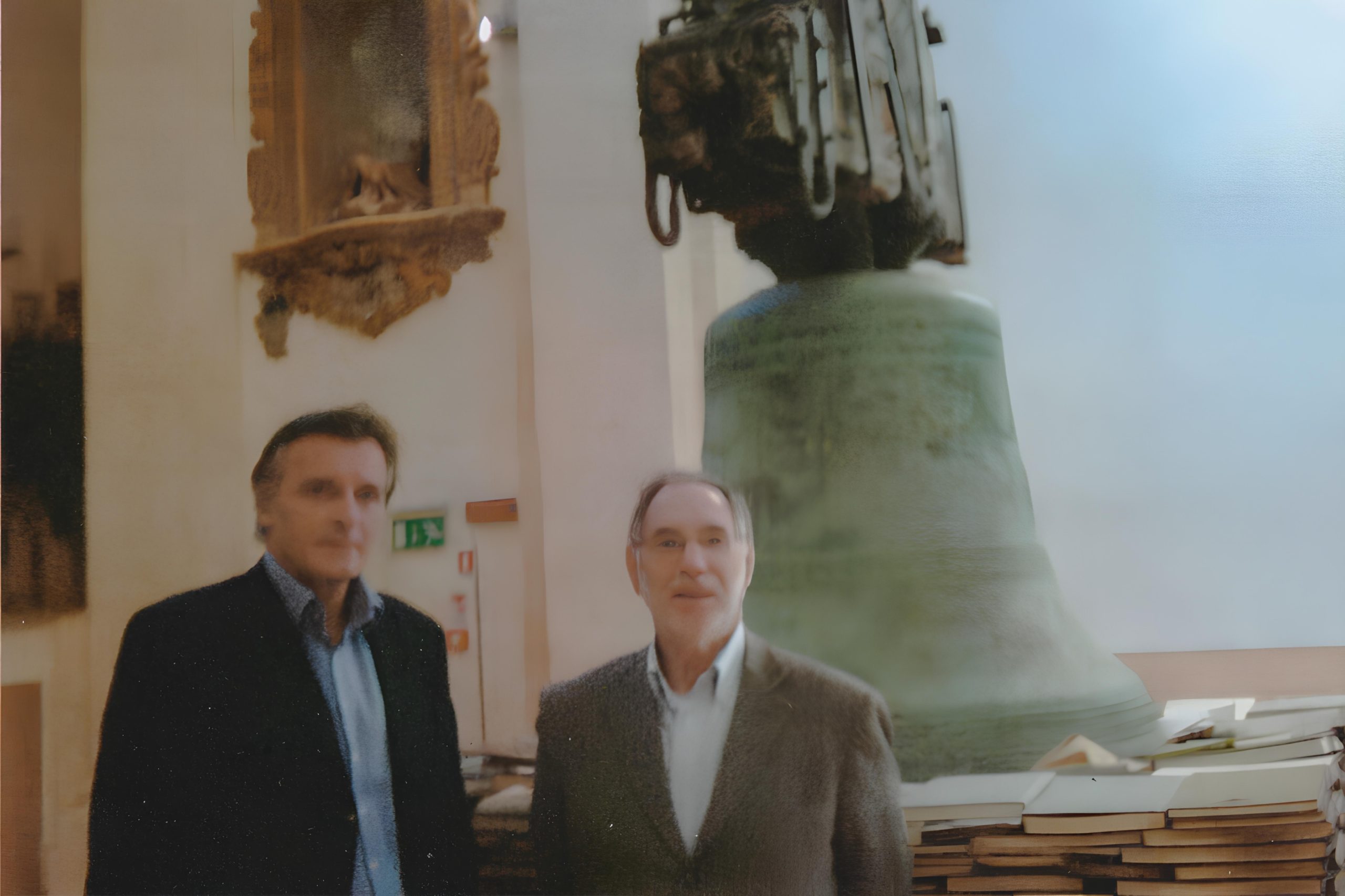 D’une église bombardée pendant la guerre et dont ne subsistait qu’une énorme cloche il fit une bibliothèque d’art, la Biblioteca d’arte e di storia di San Giorgio in Poggiale, ouverte au public, et nous découvrîmes avec lui le travail du sculpteur qui, posant cette cloche sur une pile de livres qu’elle écrase, en fait une œuvre symbolique, intitulée « Giordano Bruno ».